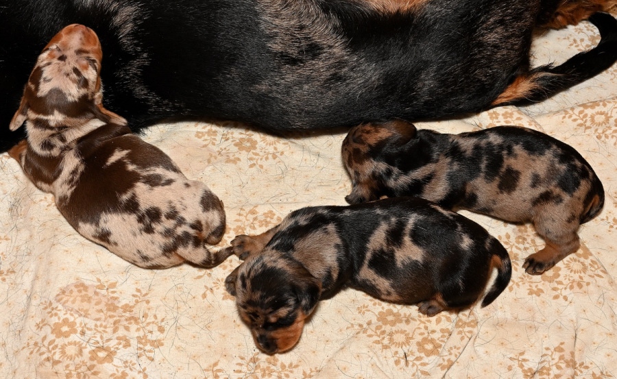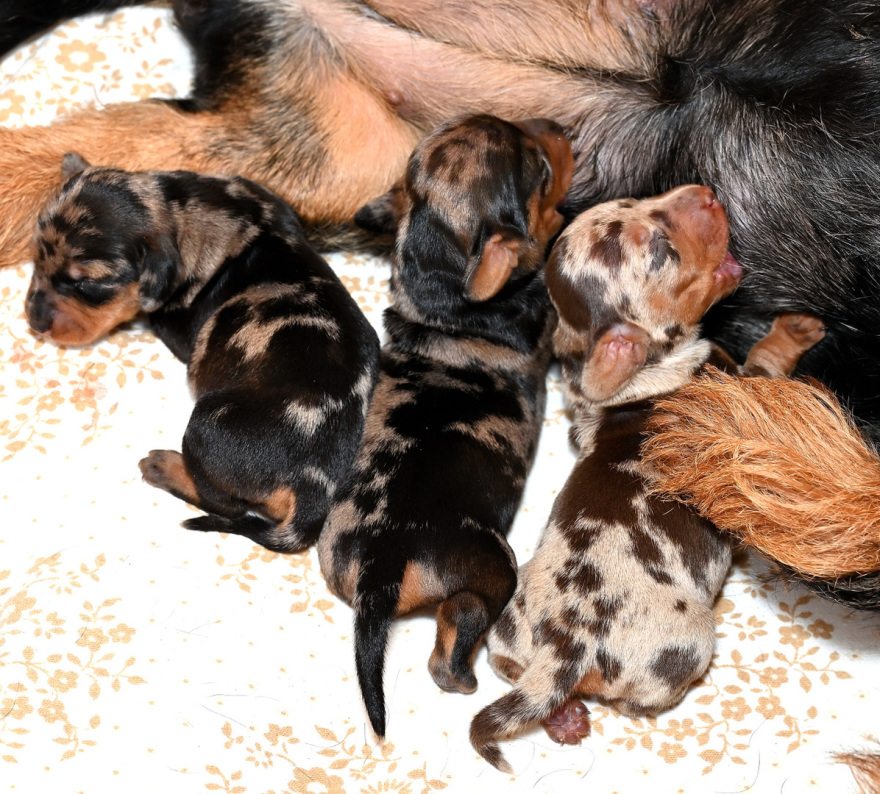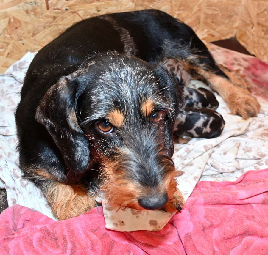 Am 28. April warf die Schwarztigerin Xurby von den braunen Erdhunden einen kleinen, aner feinen Wurf : 1,1 Saufarbentiger und 1,0 Brauntiger. Vater der Welpen ist der Multichampion Giotto vom Eisenstein.