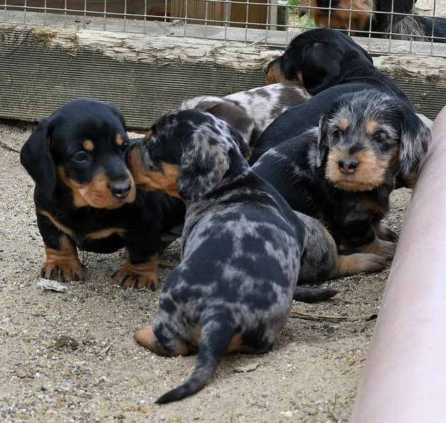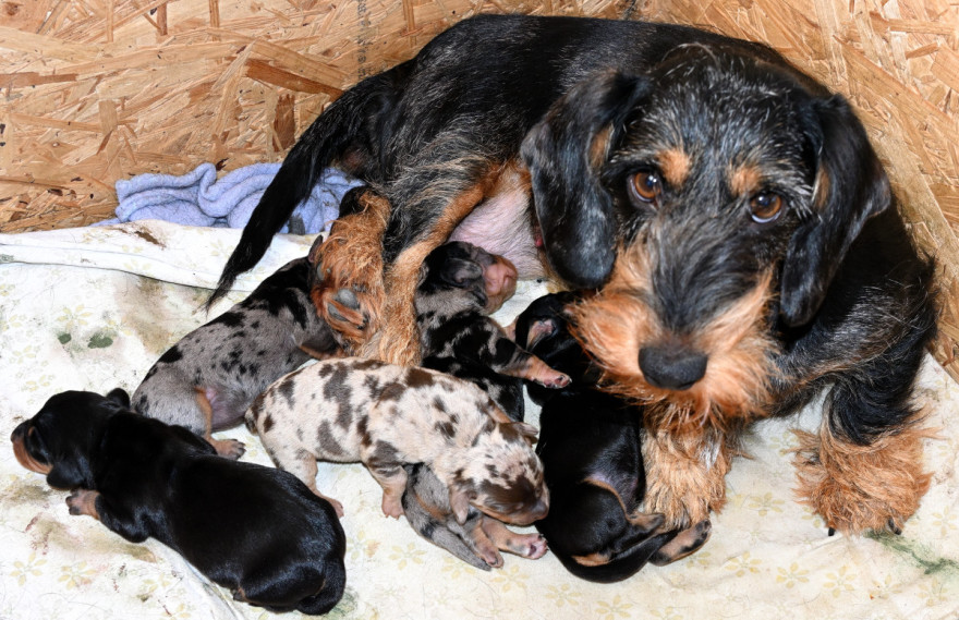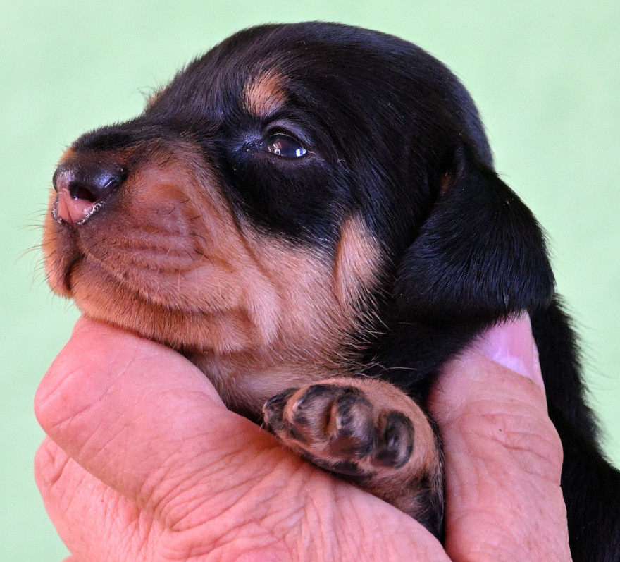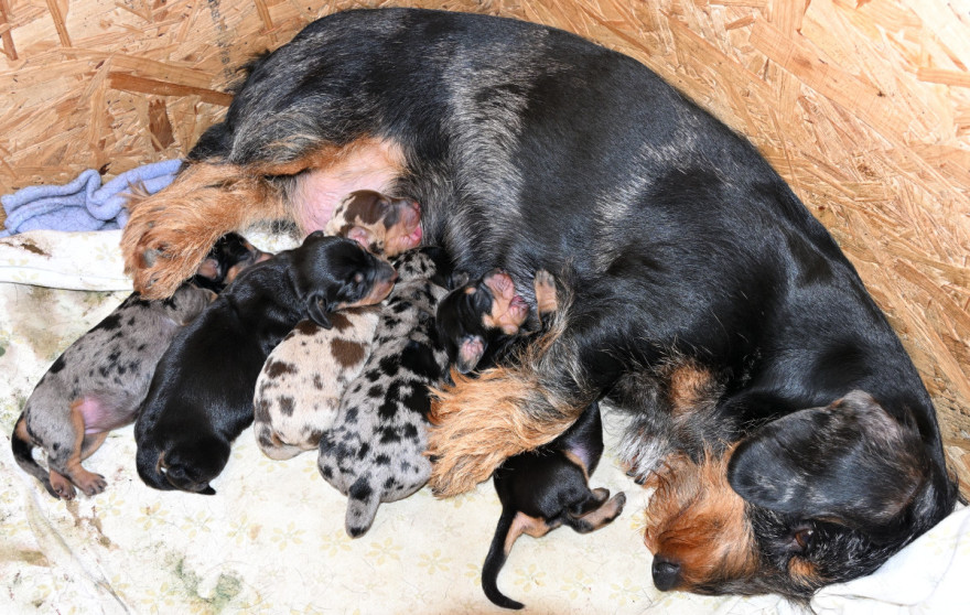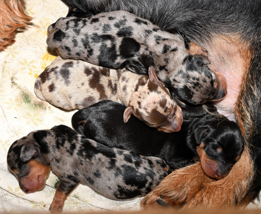 Am 8. März hat Xurby nach 69 Tagen Tragzeit fünf kräftige Welpen gewölft. Vater der Welpen ist der bildhübsche, leistungsstarke schwarzrote Rüde "Mein letzter Mungo vom Tannenhof". Es sind 1,1 schwarzrote Welpen, 1,1 Schwarztiger und 1,0 Brauntiger.
