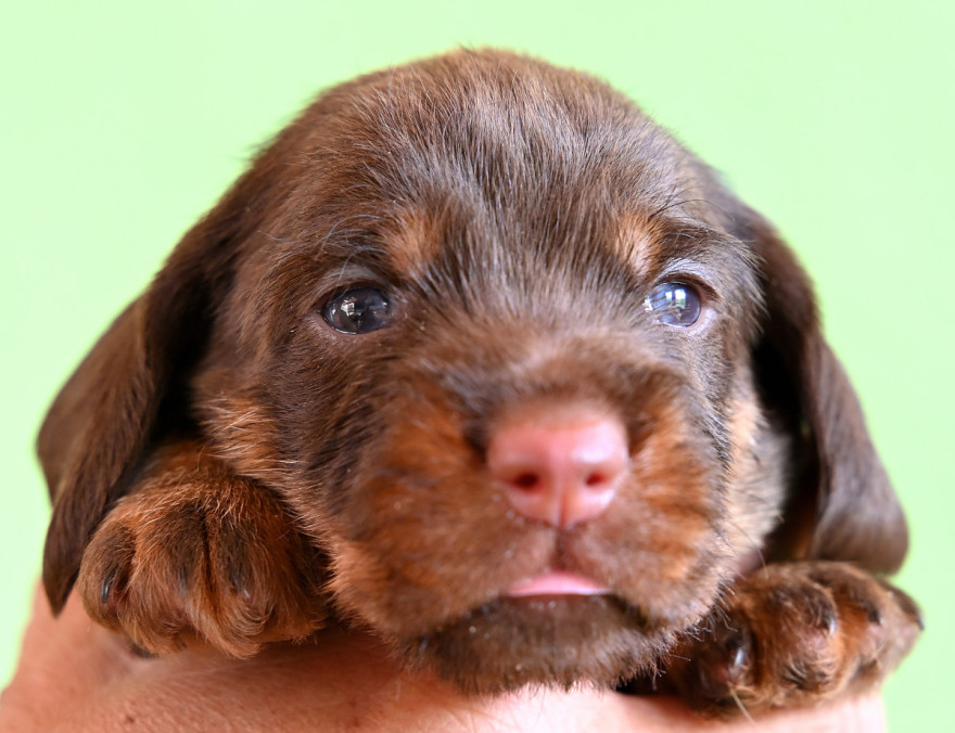 Vater der Welpen ist der leistungsstarke Gebrauchssieger Jupp vom Ordensjäger, der die seltene Farbe Braunrot trägt.