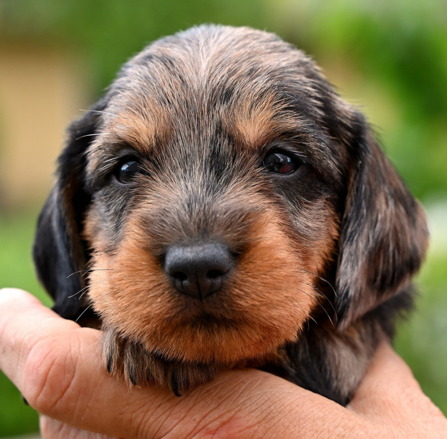 Gebrauchssieger Jazz vom Klötzle Blei ist der leistungsstarke Rüde, den ich diesmal zur Belegung unserer leistungsstarken, führigen Schwarztigerhündin Qickby ausgewählt habe, weil er auch formlich meinem Idealtyp eines Jagdteckels sehr nahe kommt.