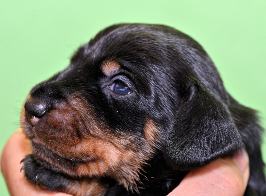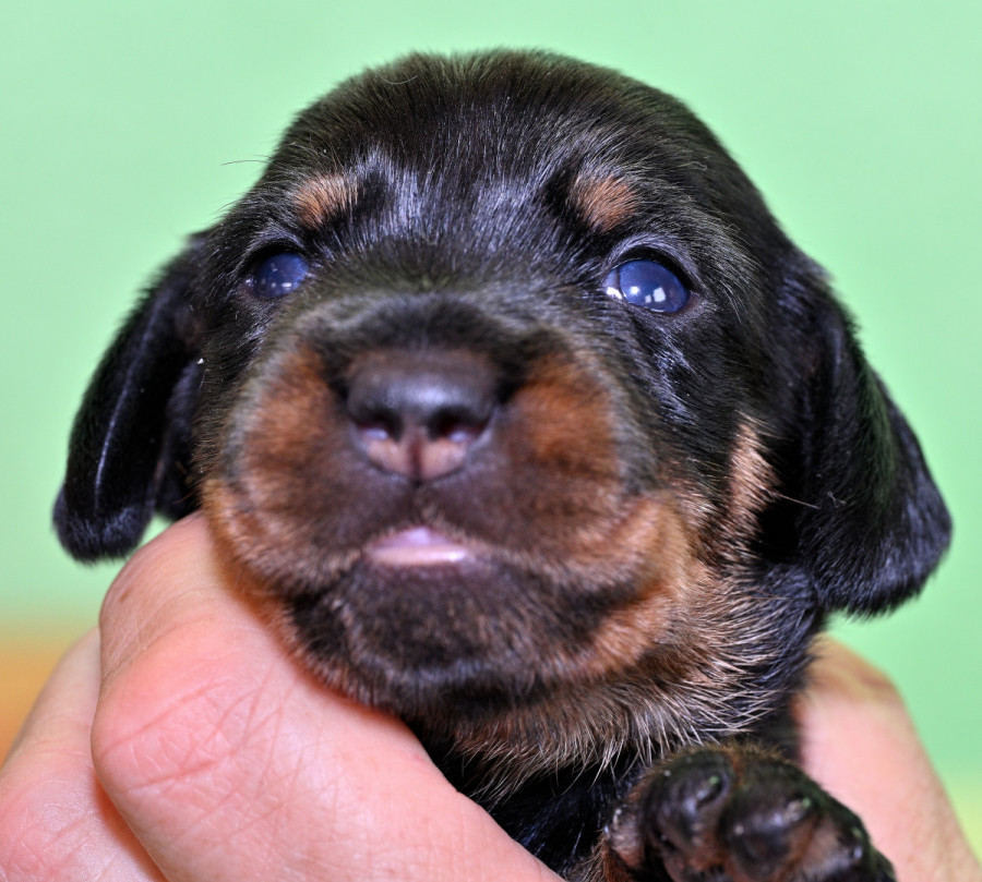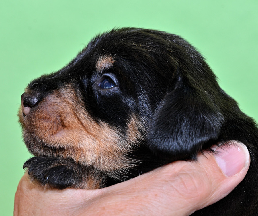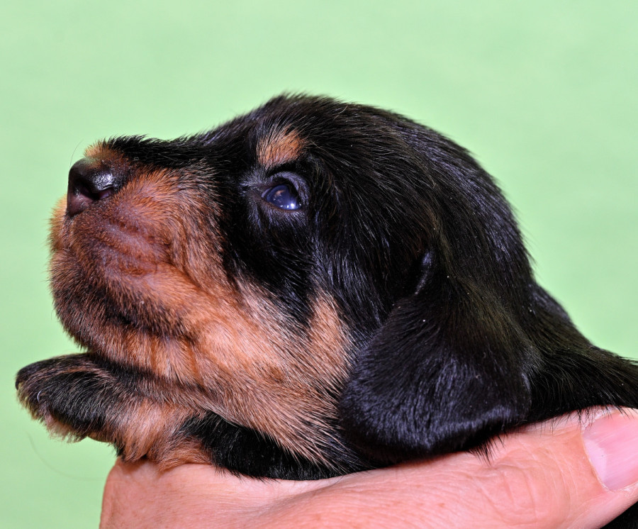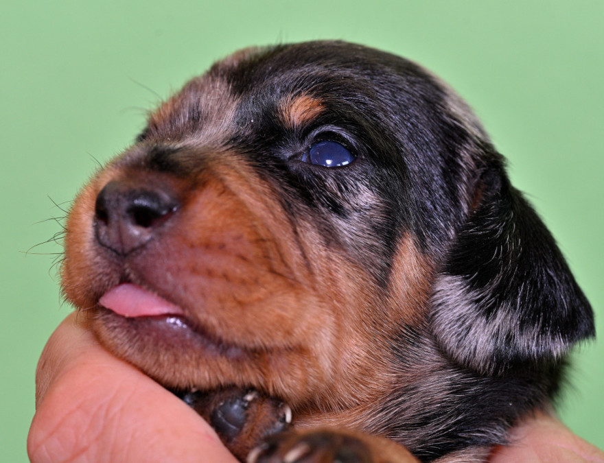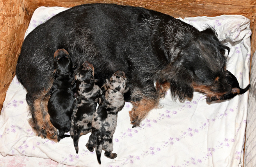 Qickby hat am 31. Januar 2024 fünf Welpen gewölft, 1,1 Schwarztiger (schw.gefl) und 1,2 schwarzrote