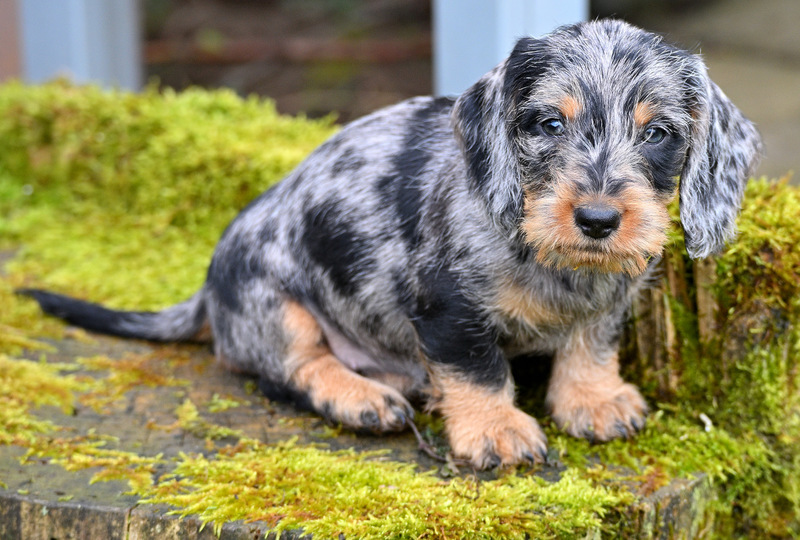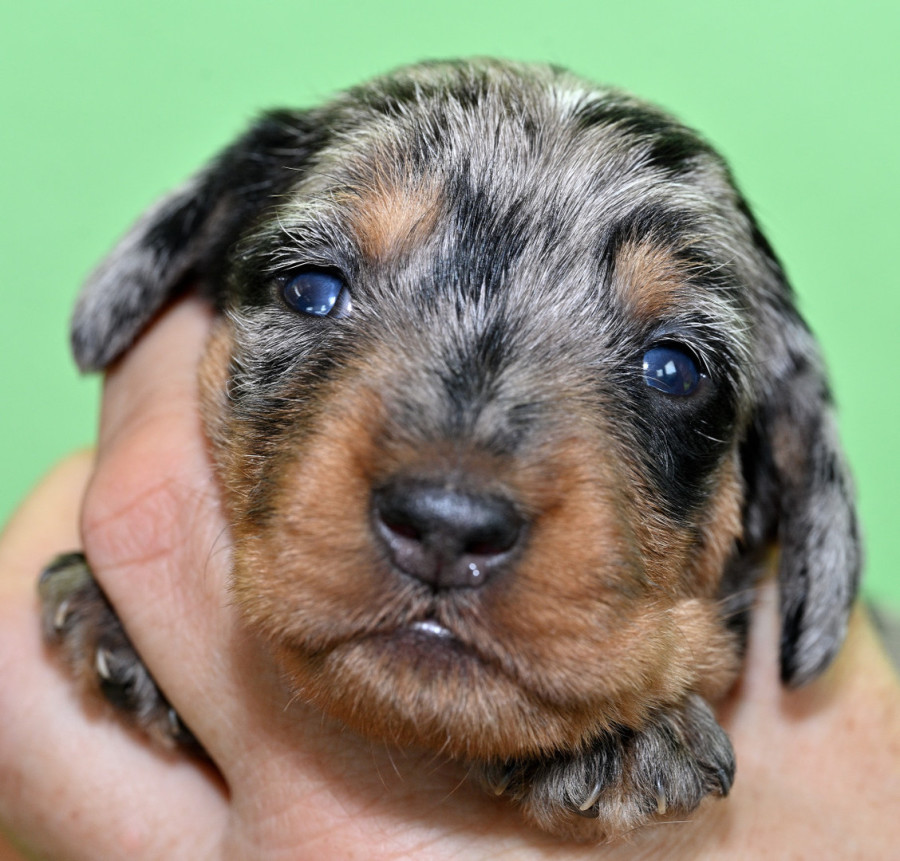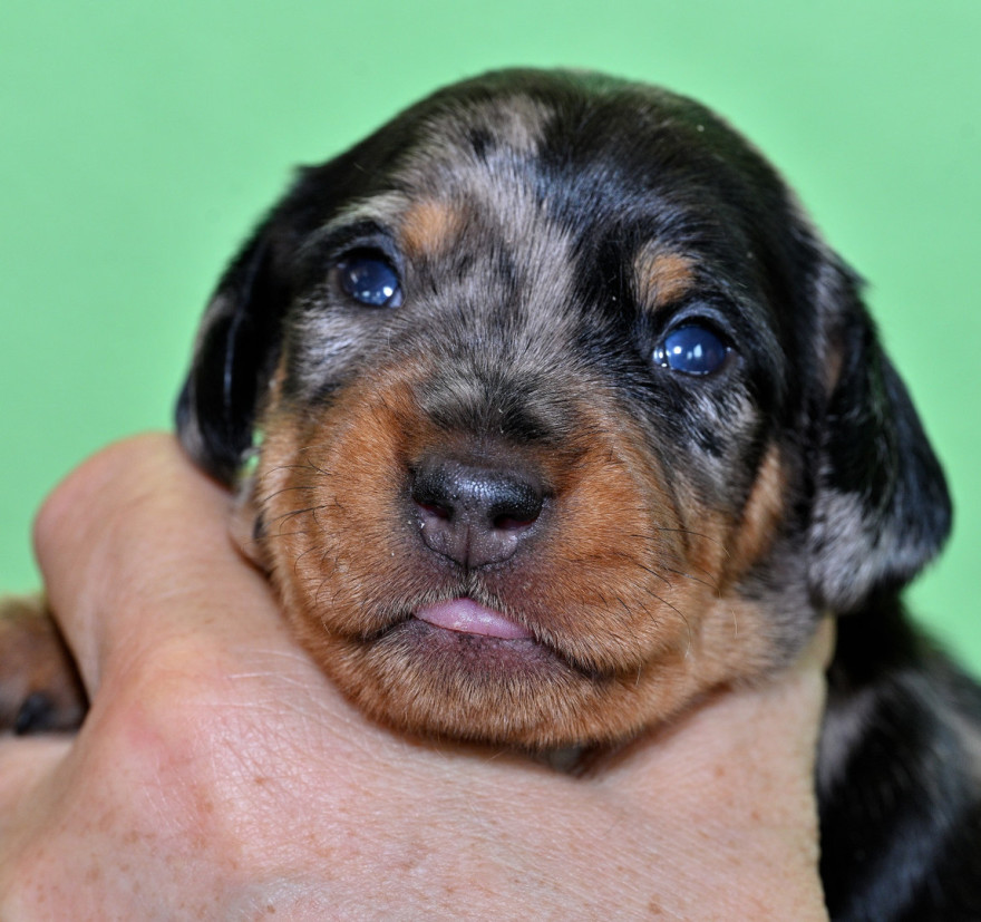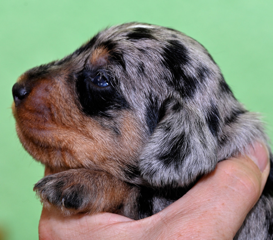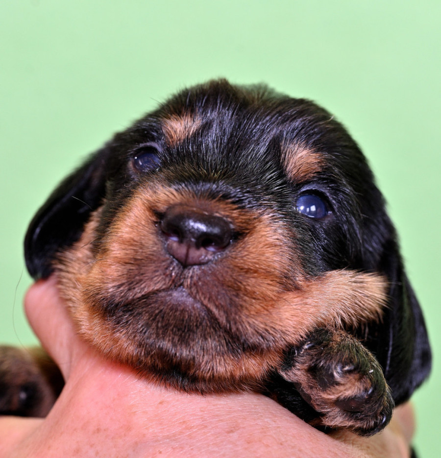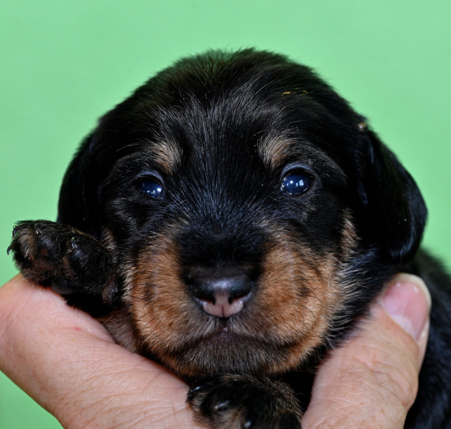 Qickby hat am 31. Januar 2024 fünf Welpen gewölft, 1,1 Schwarztiger (schw.gefl) und 1,2 schwarzrote