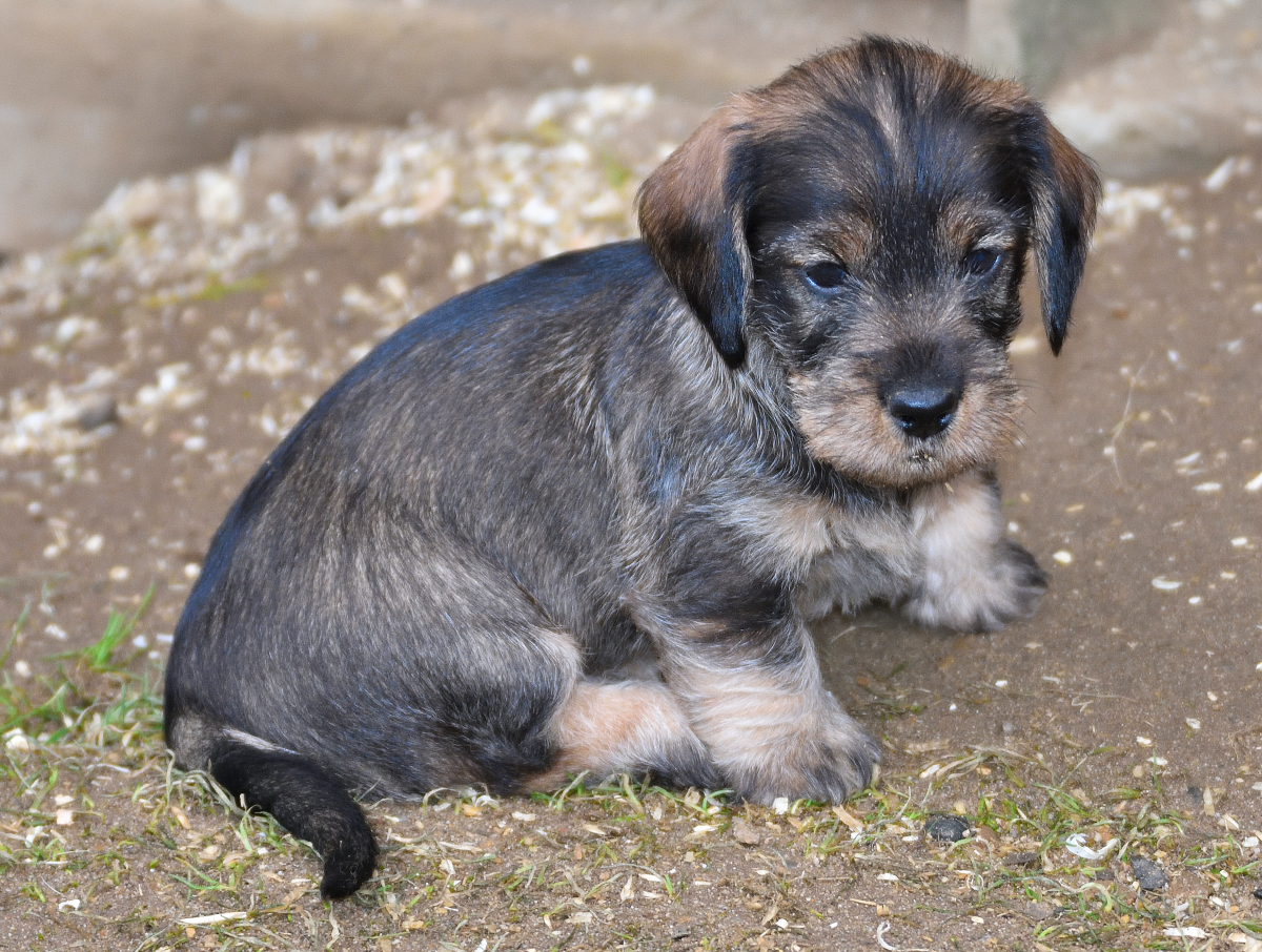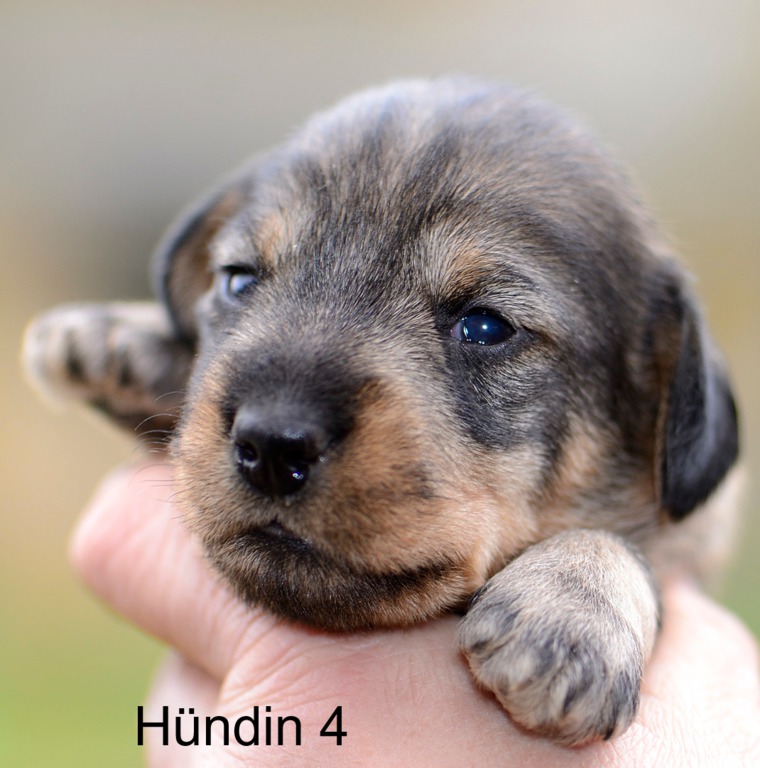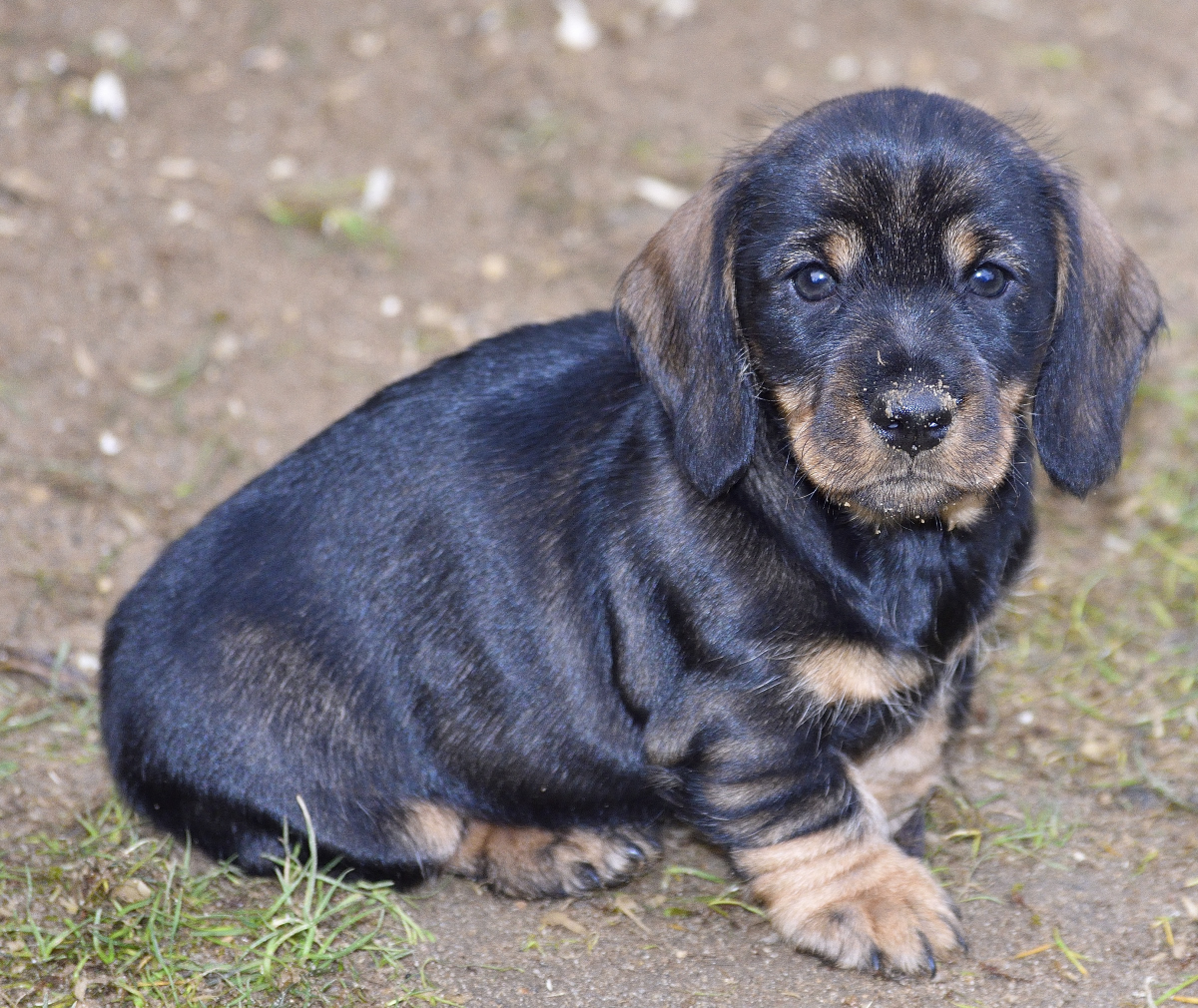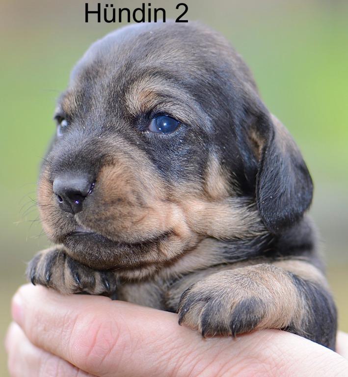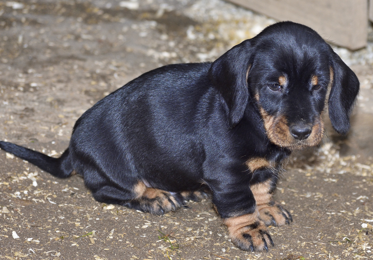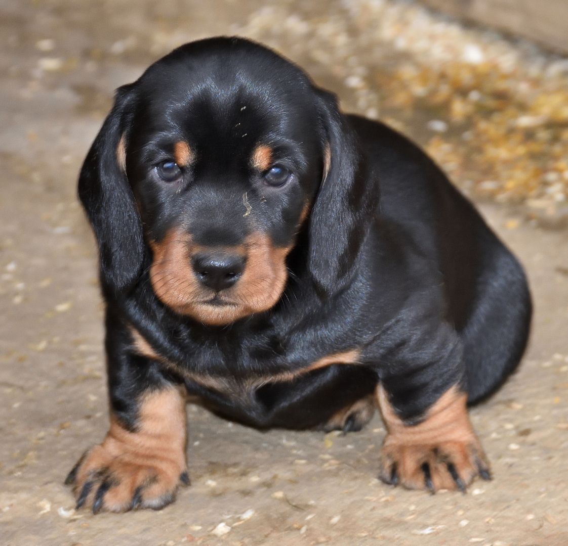 Es sind zwei Rüden in Schwarzrot und vier Hündinnen: zweimal dunkelsaufarben, einmal saufarben und einmal schwarzrot.