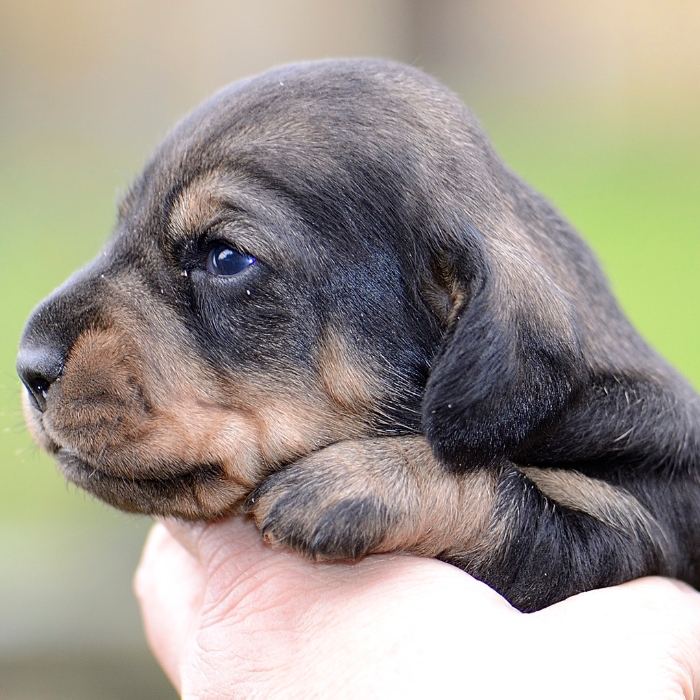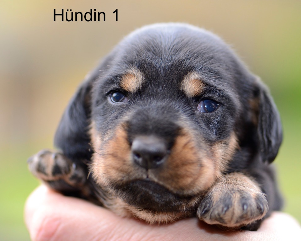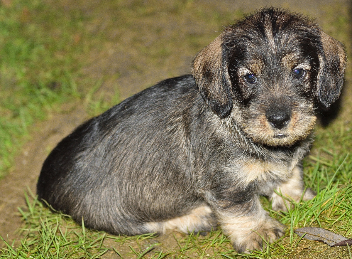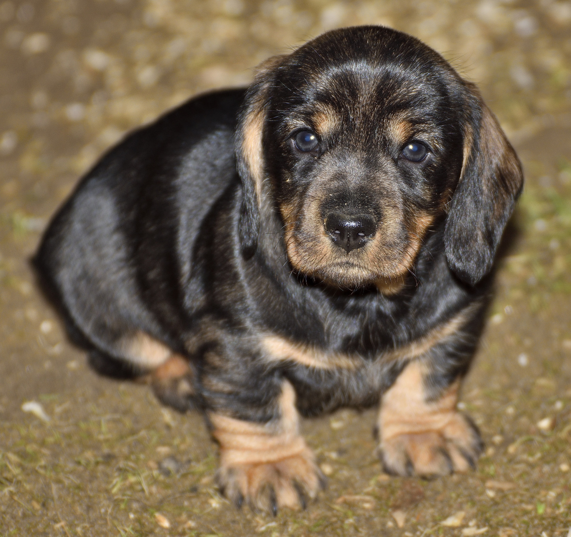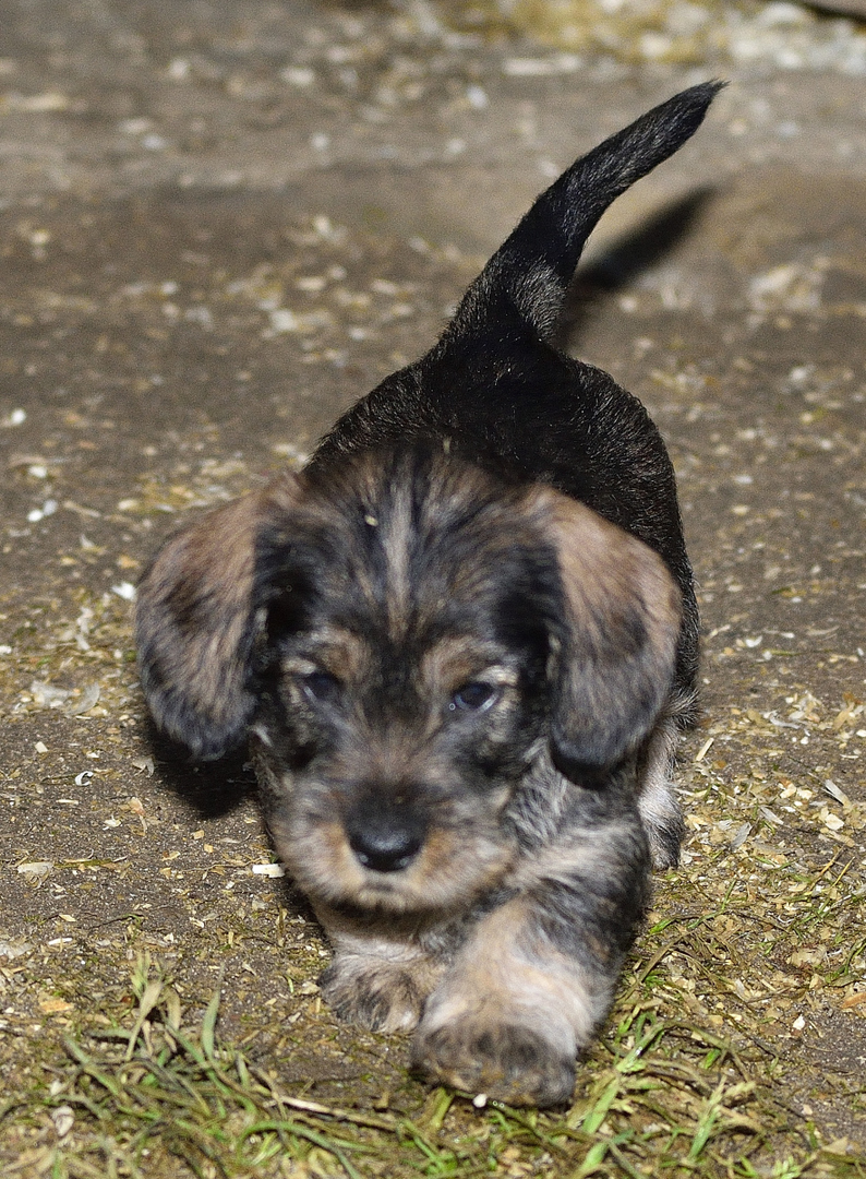 Es sind zwei Rüden in Schwarzrot und vier Hündinnen: zweimal dunkelsaufarben, einmal saufarben und einmal schwarzrot.