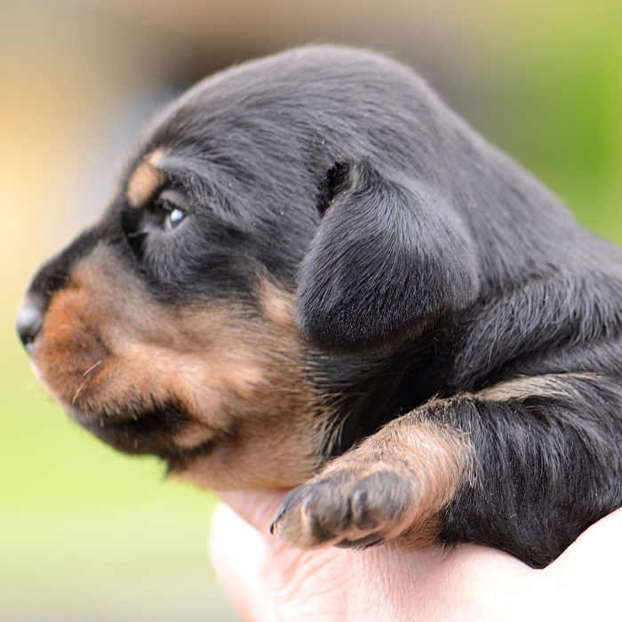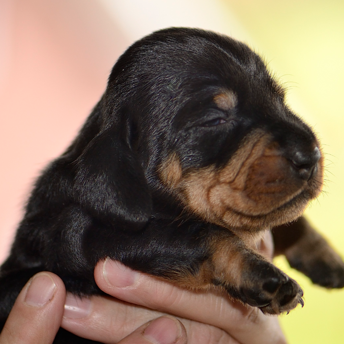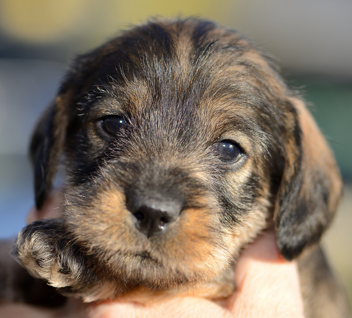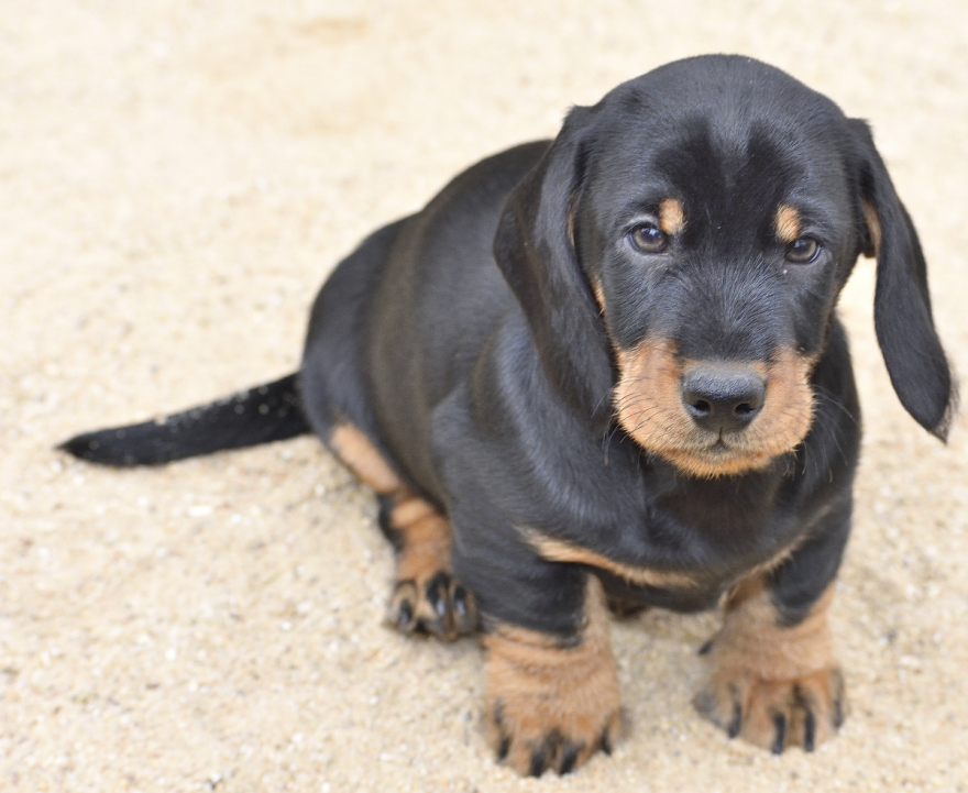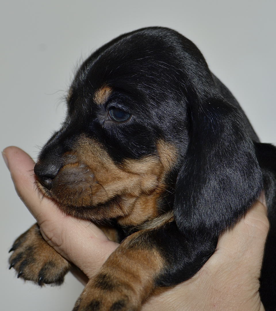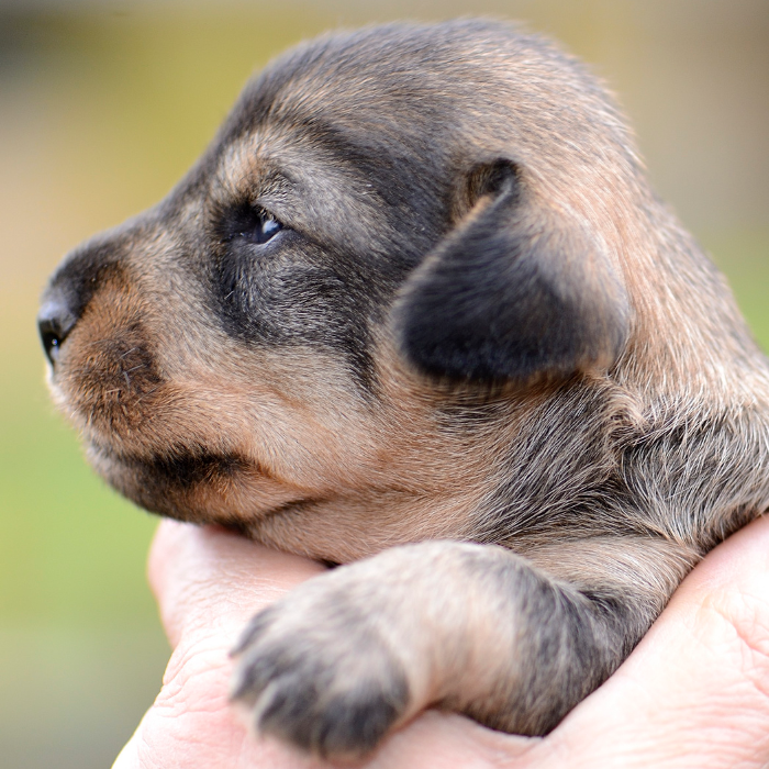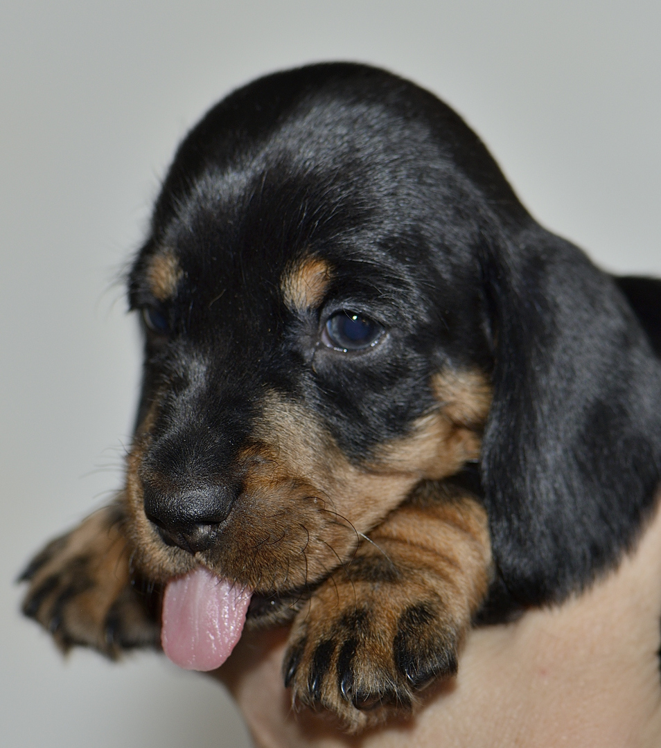 Es sind zwei Rüden in Schwarzrot und vier Hündinnen: zweimal dunkelsaufarben, einmal saufarben und einmal schwarzrot.