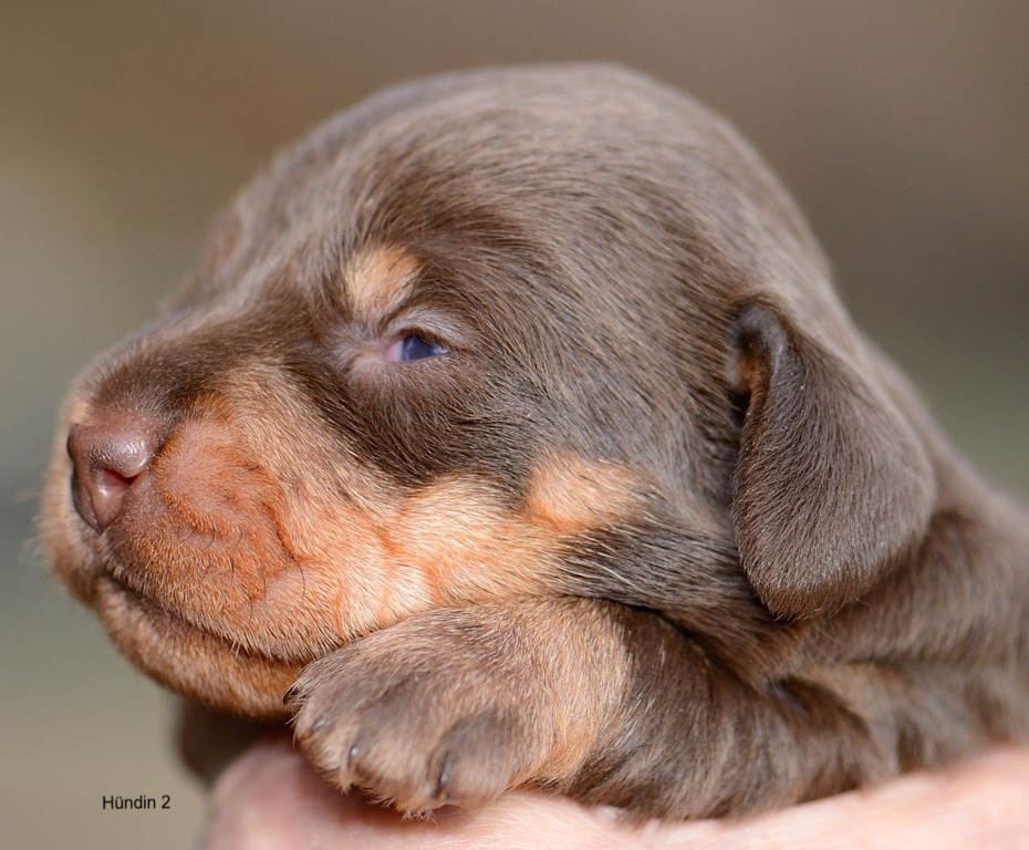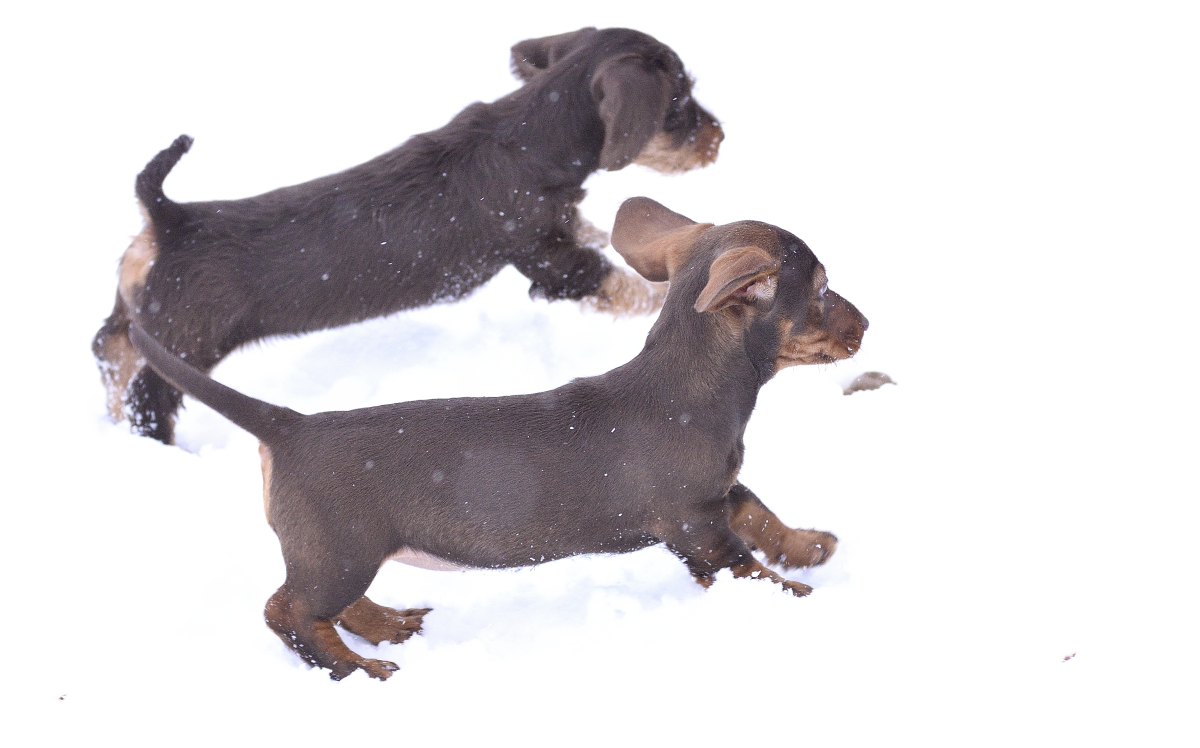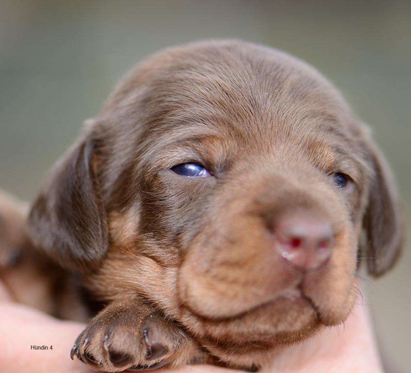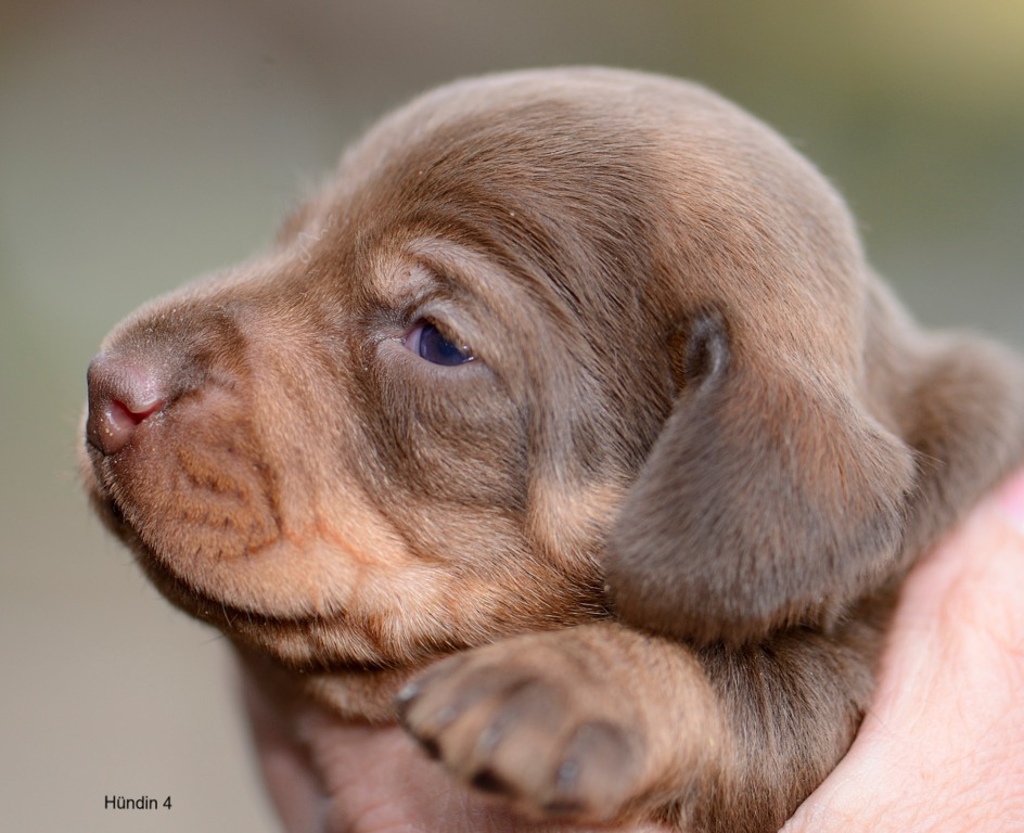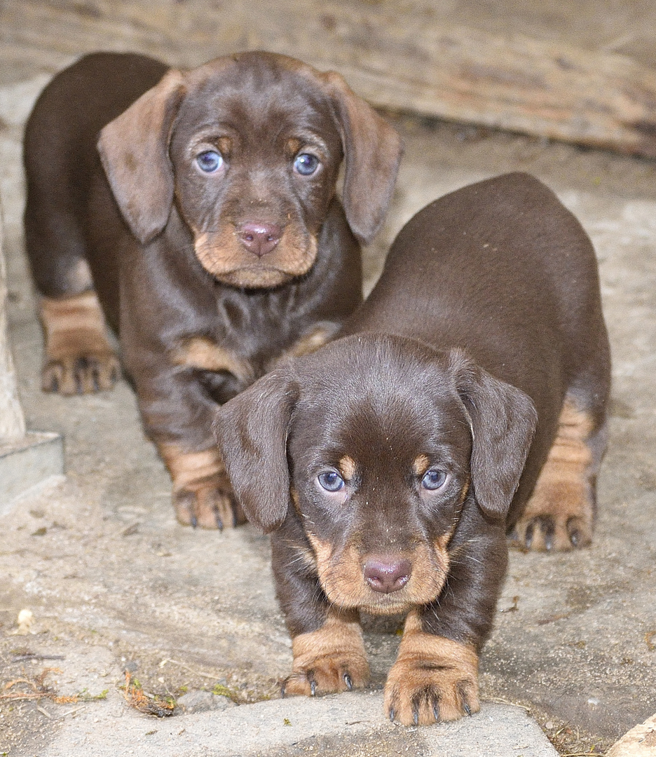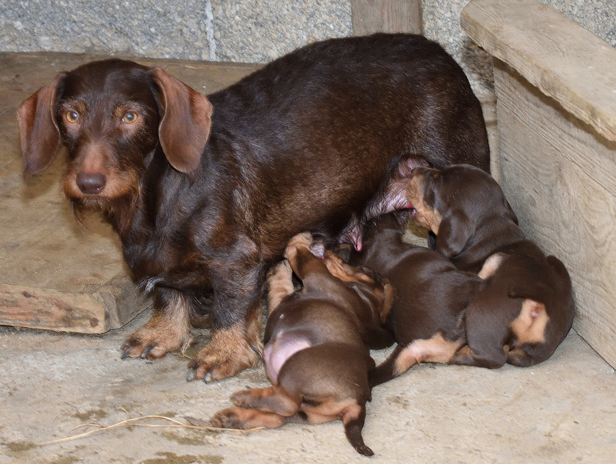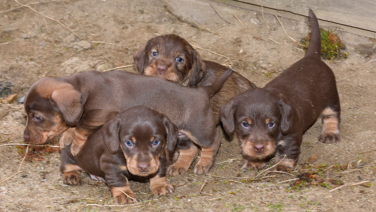 Es sind je zwei braunsaufarbene und zwei braunrote Hündinnen.