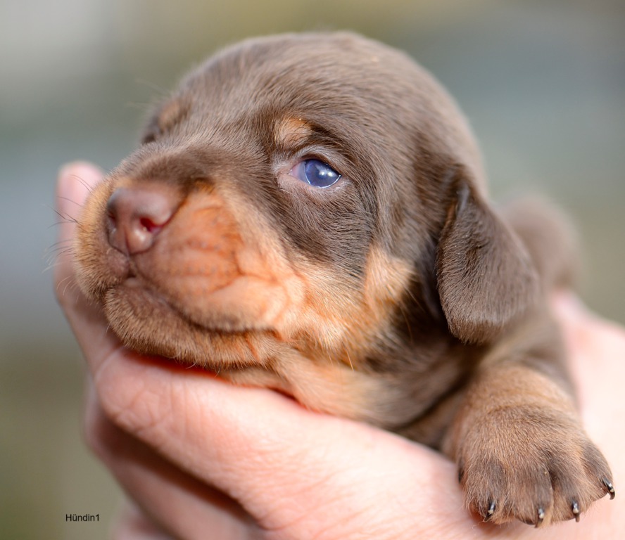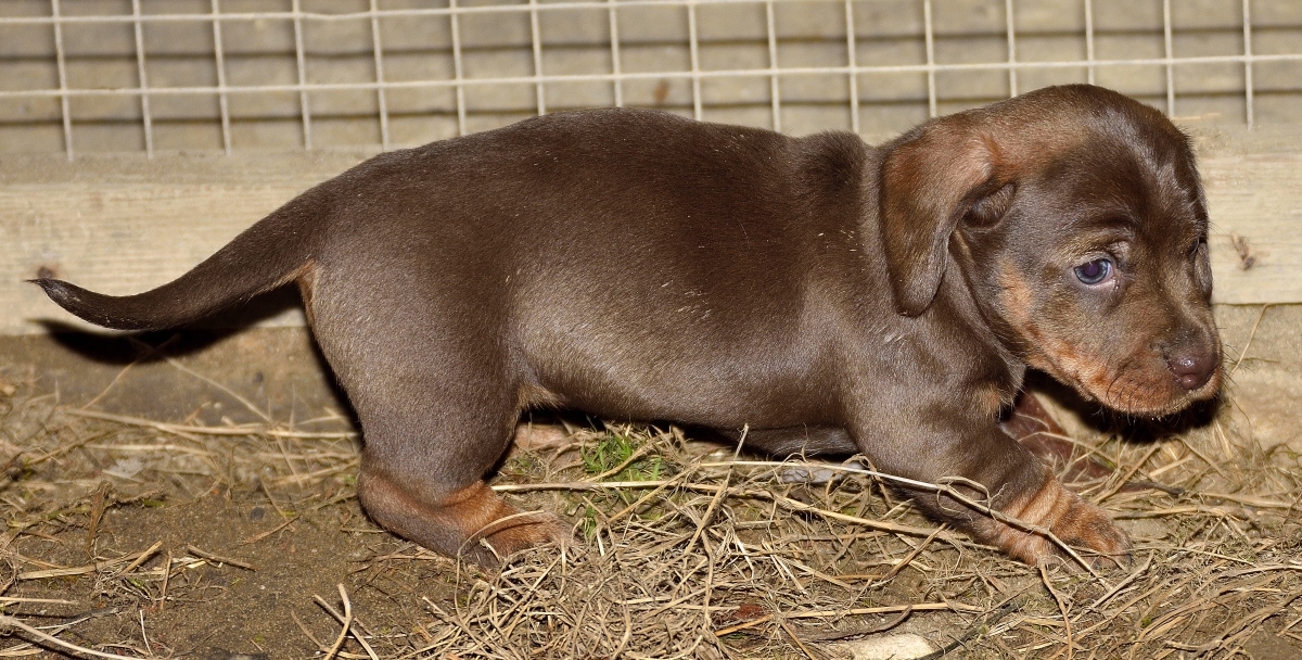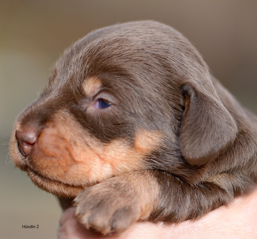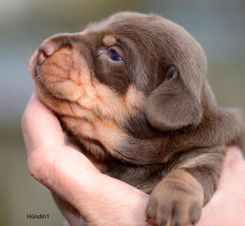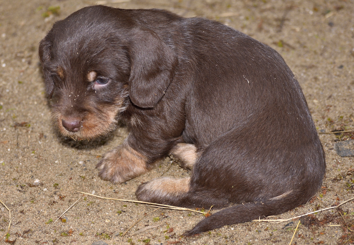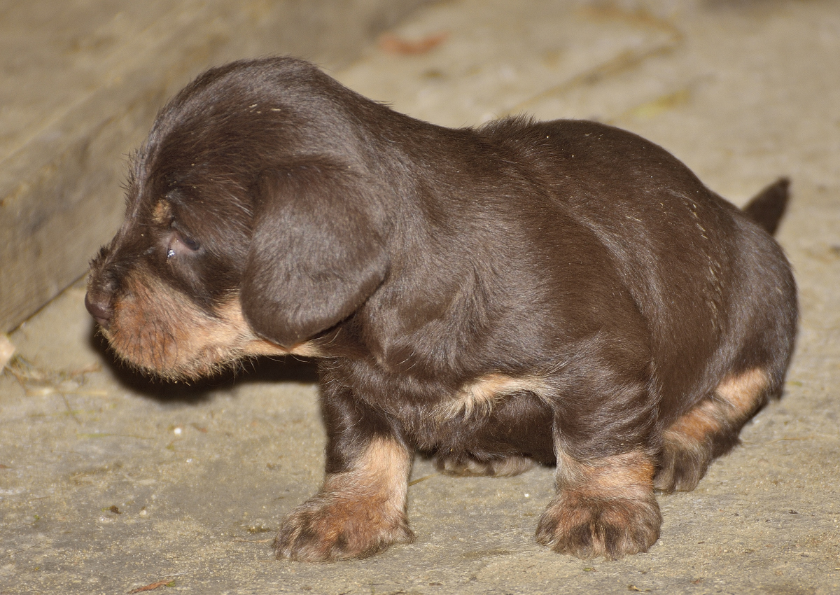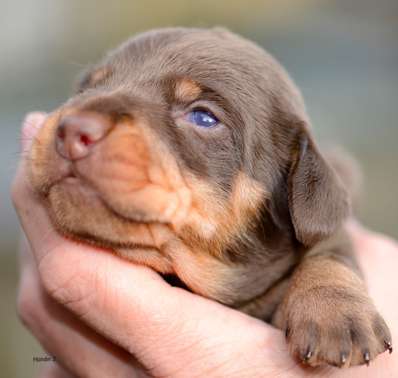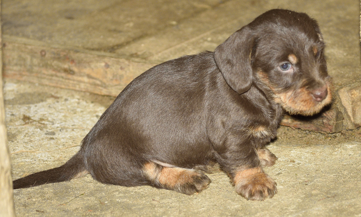 Es sind je zwei braunsaufarbene und zwei braunrote Hündinnen.
