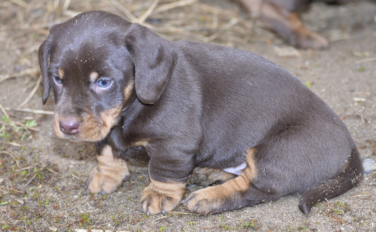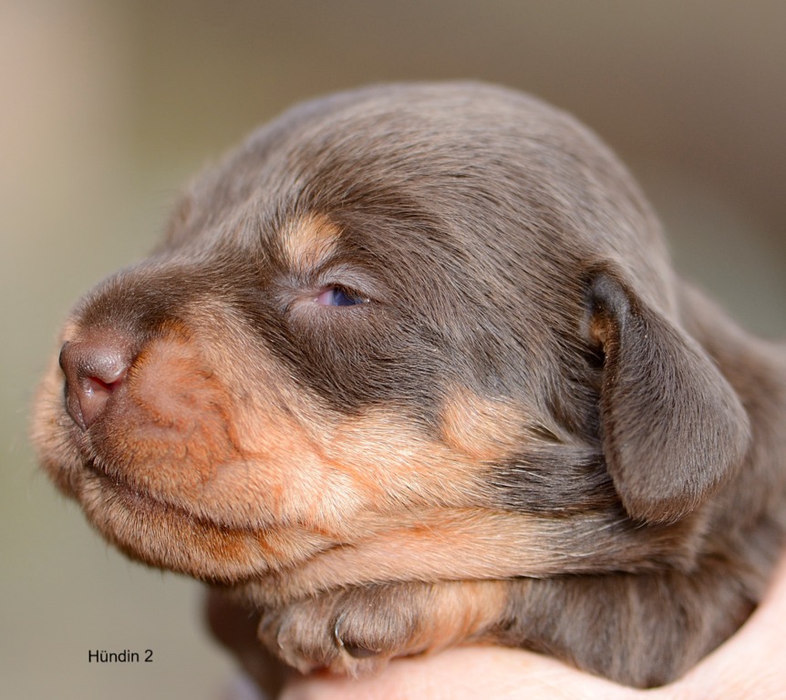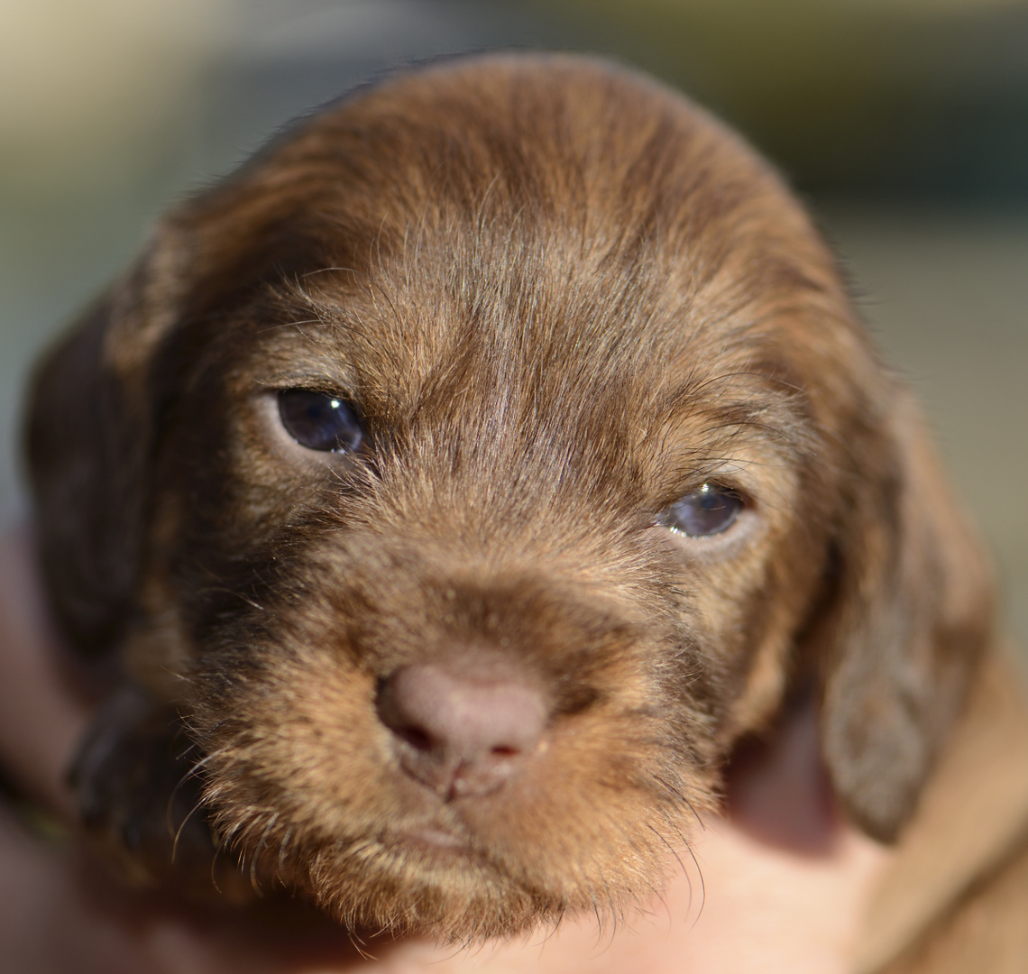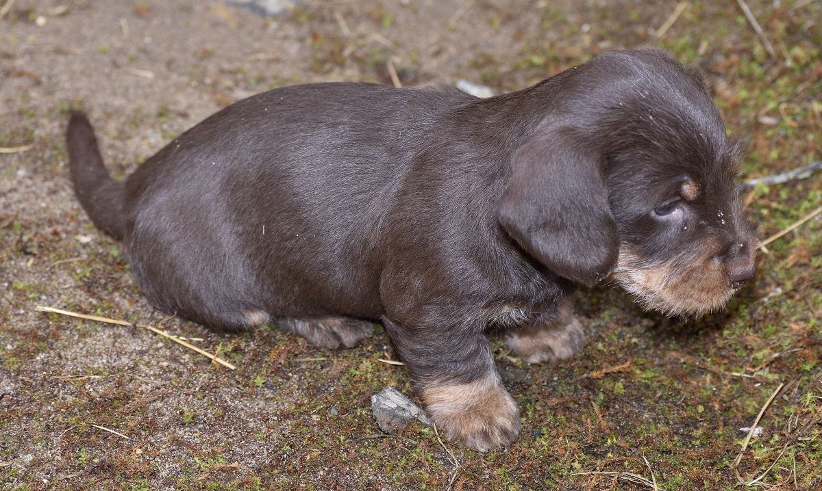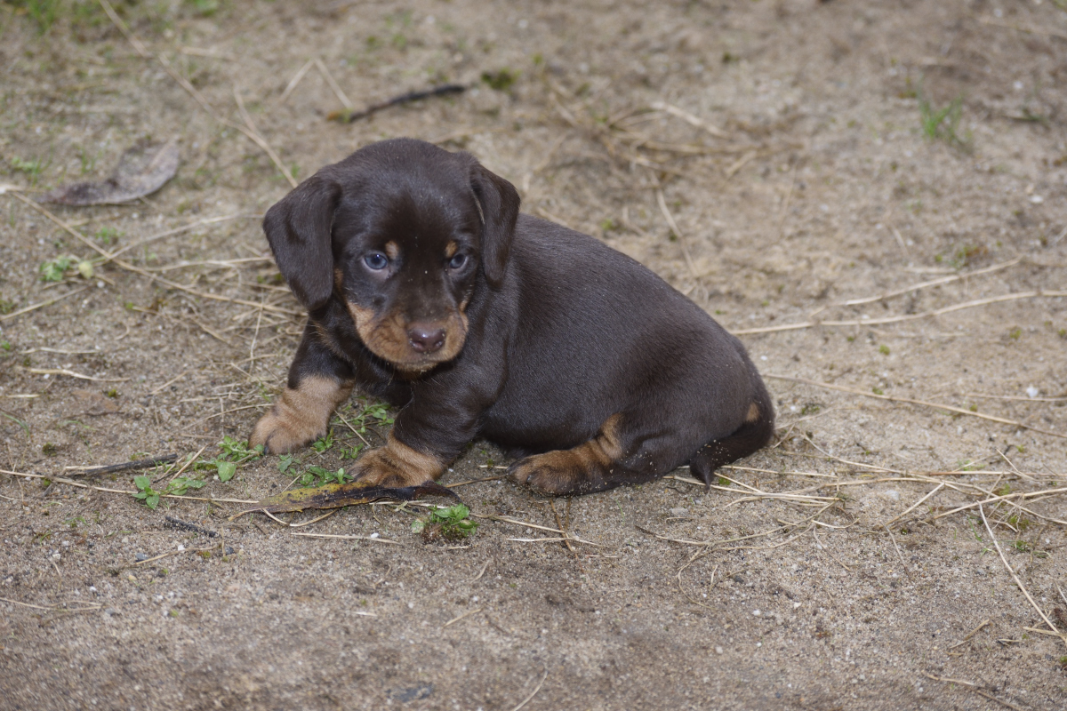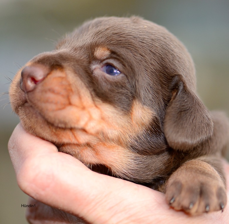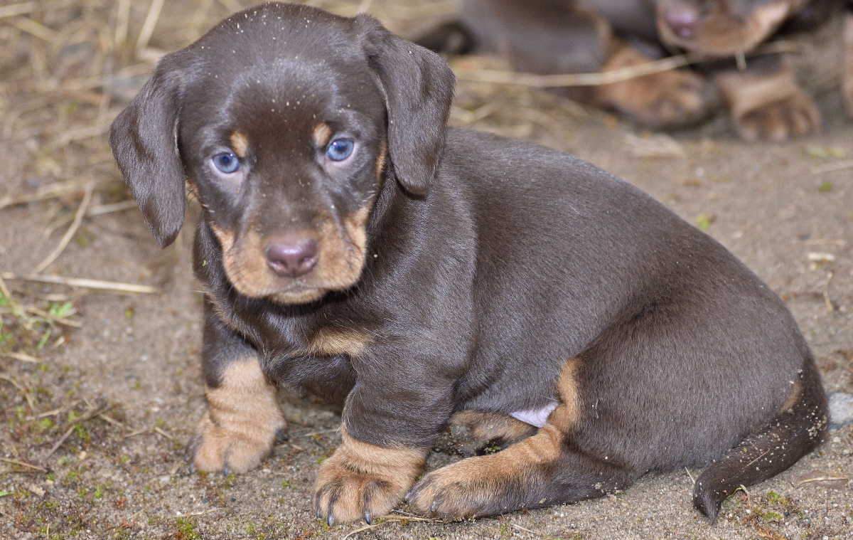 Es sind je zwei braunsaufarbene und zwei braunrote Hündinnen.