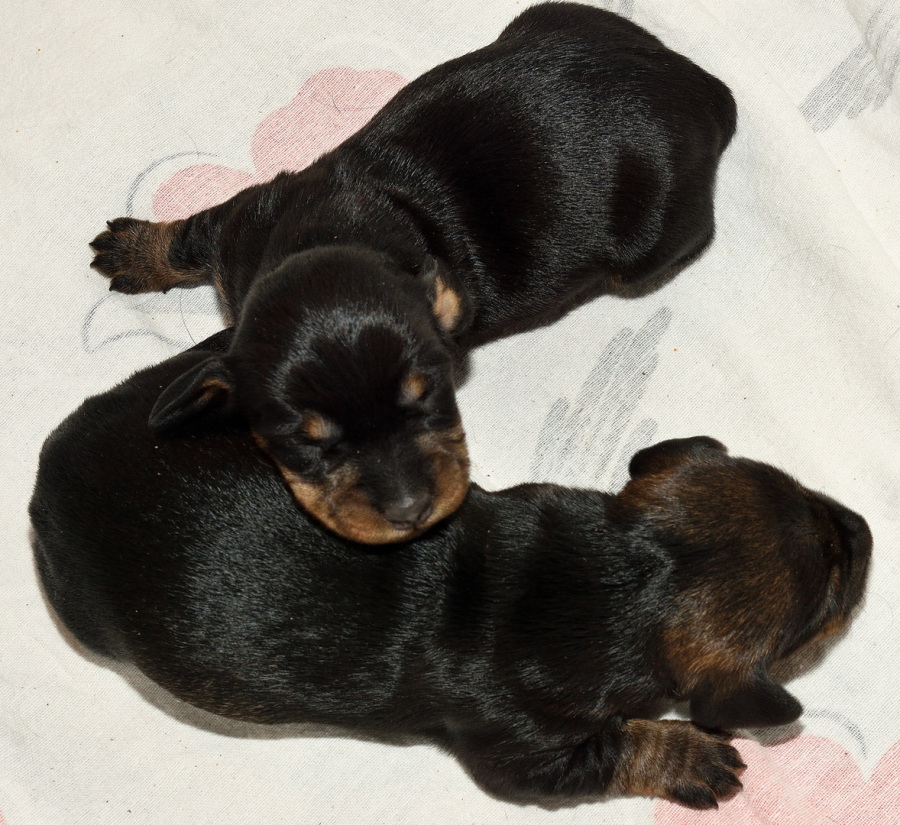 In der ersten Lebenswoche haben sich die Welpen hervorragend entwickelt und ihr Geburtsgewicht mehr als verdoppelt.