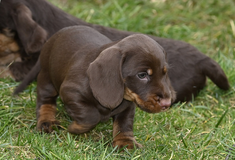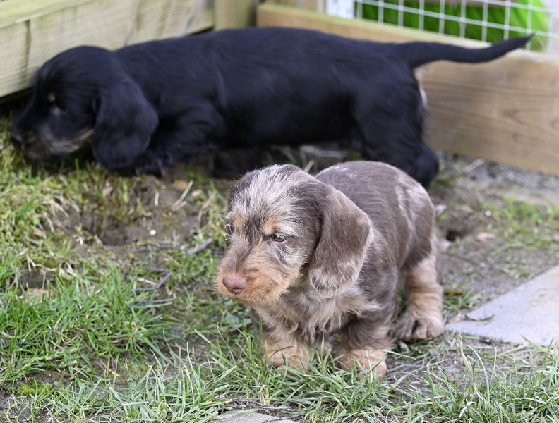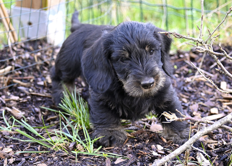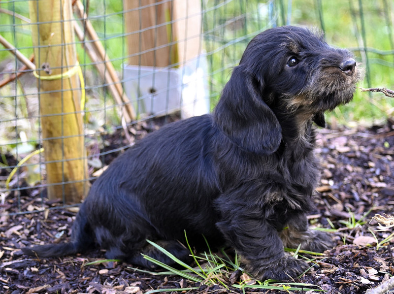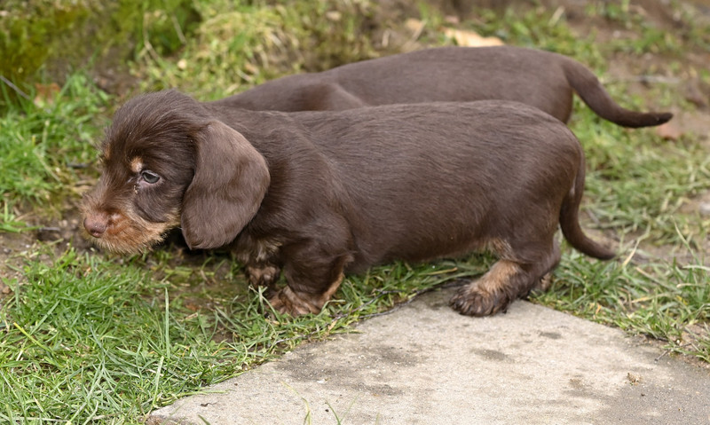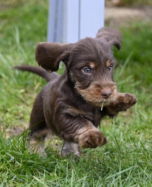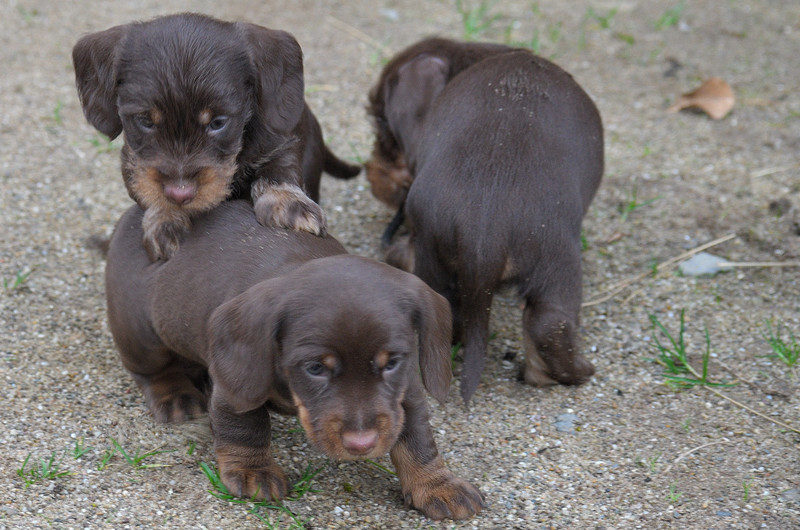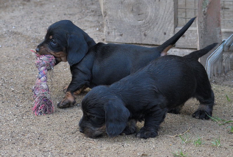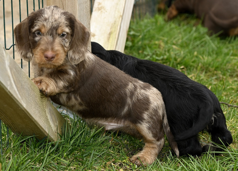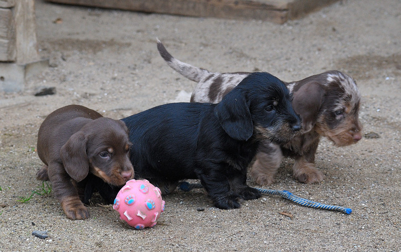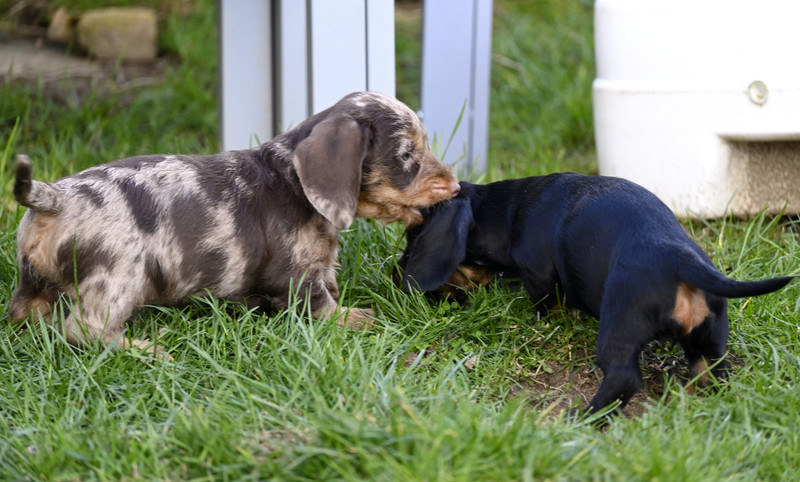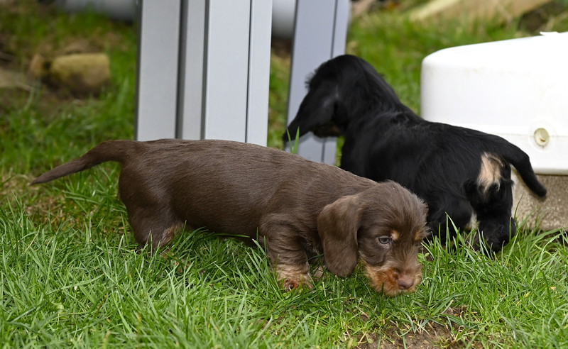 In der 8. Woche, bevor der Zuchtwart kommt, gibt es einiges zu tun, Die Babys müssen heimpft werden und machen die letzte Wurmkur. Außerdem sollen sie, wenn das Wetter es erlaubt, viel draußen an der frischen Luft sein, ihre Umwelt mit all den interessanten Geräuschen und Gerüchen durch intensives Wahrnehmen kennenlernen. Eigentlich ist es die schönste Zeit mit den Welpen, denn erst jetzt sind es richtige kleine Hunde mit allem drum und dran. Hier noch einmal einige Eindrücke aus dem großen Welpenauslauf: