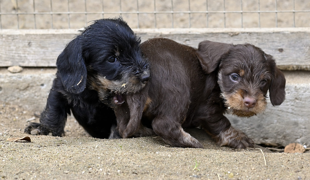 Die Babys nutzten am 17. Februar den ersten Sonnennachmittag, um ihren Zwinger zu erkunden und etwas der zarten Vorfrühlingswärme einzufangen.